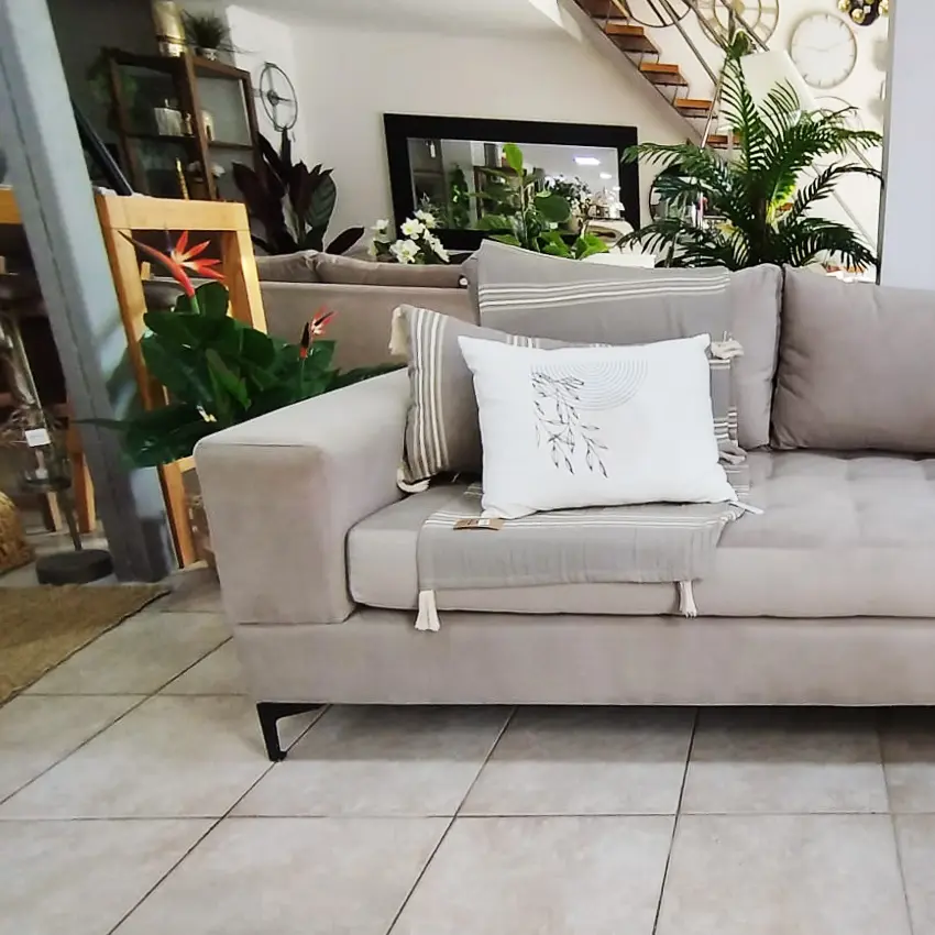 El Sillón Nazareth está diseñado para quienes buscan un equilibrio entre diseño moderno y máximo confort. Su estructura de 2 metros de ancho por 1 metro de profundidad ofrece un espacio amplio y cómodo, ideal para momentos de descanso o reuniones en el living.